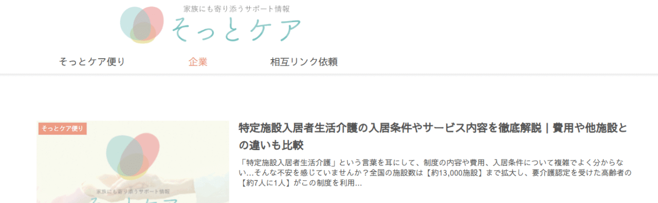 そっとケアは、介護に関するさまざまな情報を丁寧に発信しているサイトです。